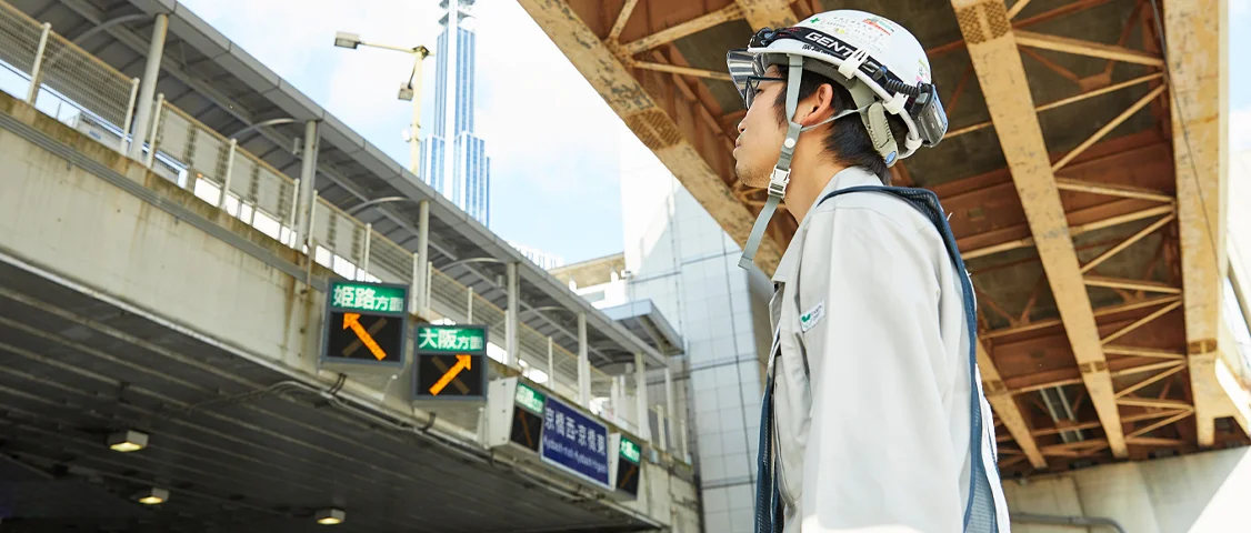 阪神高速の維持管理を一括して手がける阪神高速技術株式会社。その中で、阪神高速における機械設備、電気設備の維持管理に携わる仕事があります。