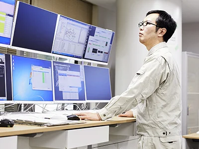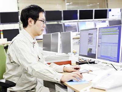 設備監視室には2つのグループがあります。一つは24時間365日体制で設備を監視し、事故や設備障害が発生したら、即座に出動し、応急処置を行うグループ。もう一つは発生した障害の原因を究明し、再発防止策を検討したり、次に起きる可能性が高い障害を予測することで、障害を未然に防ぐグループ。私は後者に属しています。